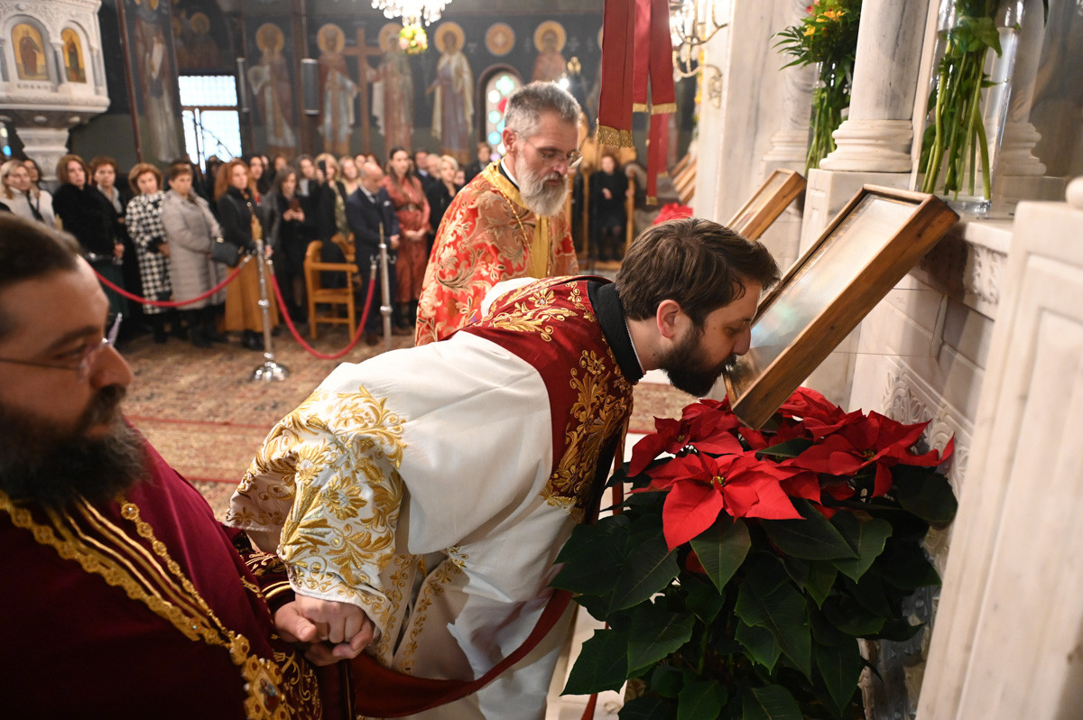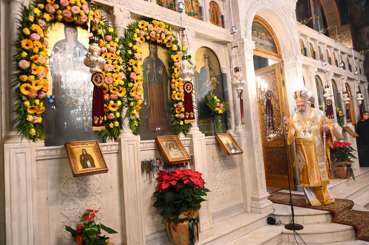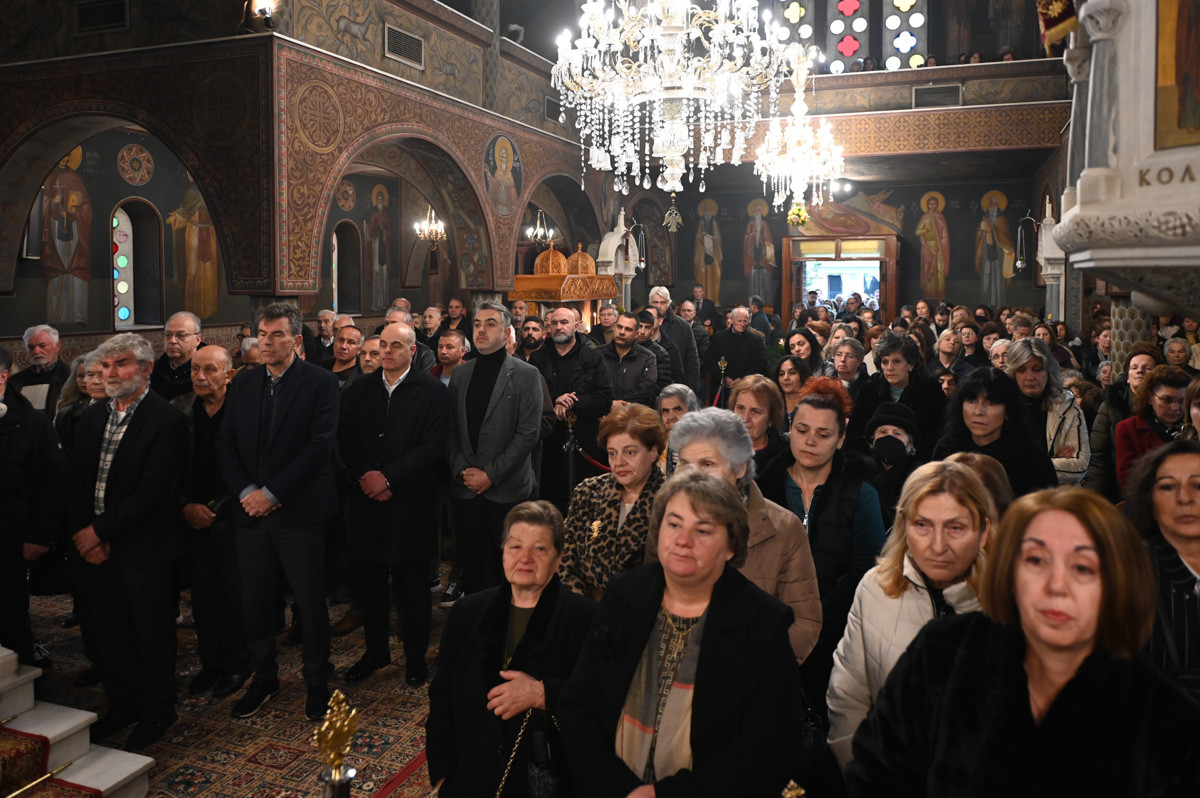 Επίσης, ευχαρίστησε τους παρισταμένους Ιερείς, τους άρχοντες, τον χορό των ιεροψαλτών, τα μέλη του εκκλησιαστικού συμβουλίου, της φιλοπτώχου διακονίας και τους διακονητές του ναού.